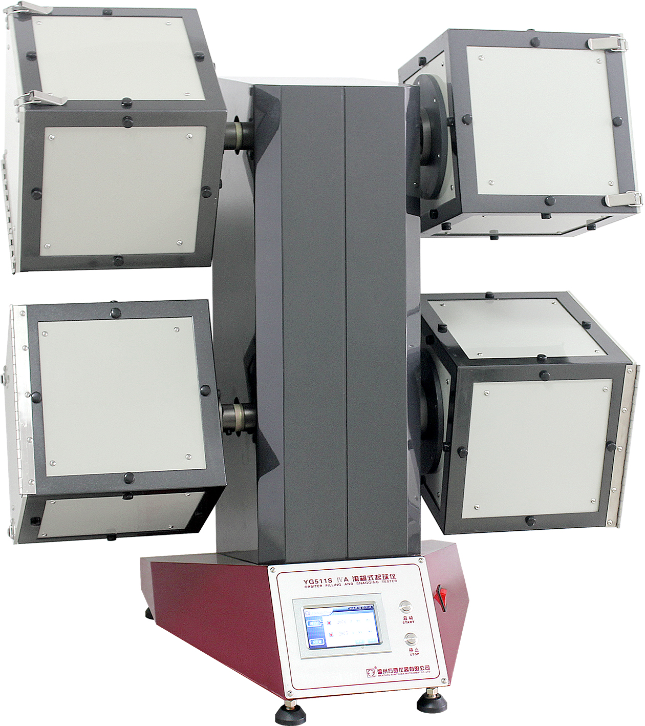 YG511S-IVA滾箱式起球儀 ISO 12945.1 , BS5811,GB/T4802.3 ,IWS TM152,JIS L1076等標準。